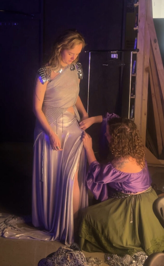 With only the essentials – some amazing accessories, safety pins, and patience – a goddesses outfit emerged from nothing but a bag of loose fabric and clanking chains. Now that’s alchemy.